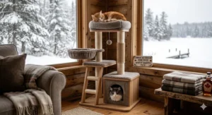 Window Access: Canadian cats love watching birds, squirrels, and changing weather patterns. Position trees near windows (but not directly against cold winter glass). The visual stimulation reduces boredom and satisfies hunting instincts safely.