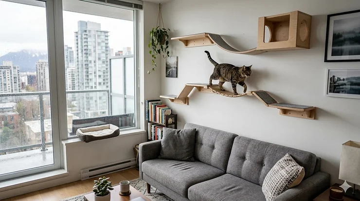 Winter Considerations: Heated Canadian homes have very low humidity, which can dry out wood and affect joint integrity. Consider a humidifier in rooms with extensive cat walkways—beneficial for both your furniture and your cat’s respiratory health. Check mounting points more frequently during winter months when heating systems run constantly.